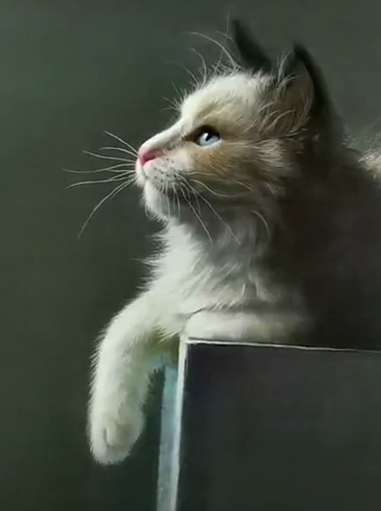最后的这个图里面就是当所有的绘画步骤都完成之后的样子了,可以看到里面的猫咪就像是一个照片一样,看起来非常的逼真,而且很是精致,很多网友看到这个效果之后都说,自己倒吸了一口凉气,因为太像了,还以为猫咪变活了呢?