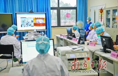 在武汉前线的广东医疗队与在广州的专家团队进行远程会诊。