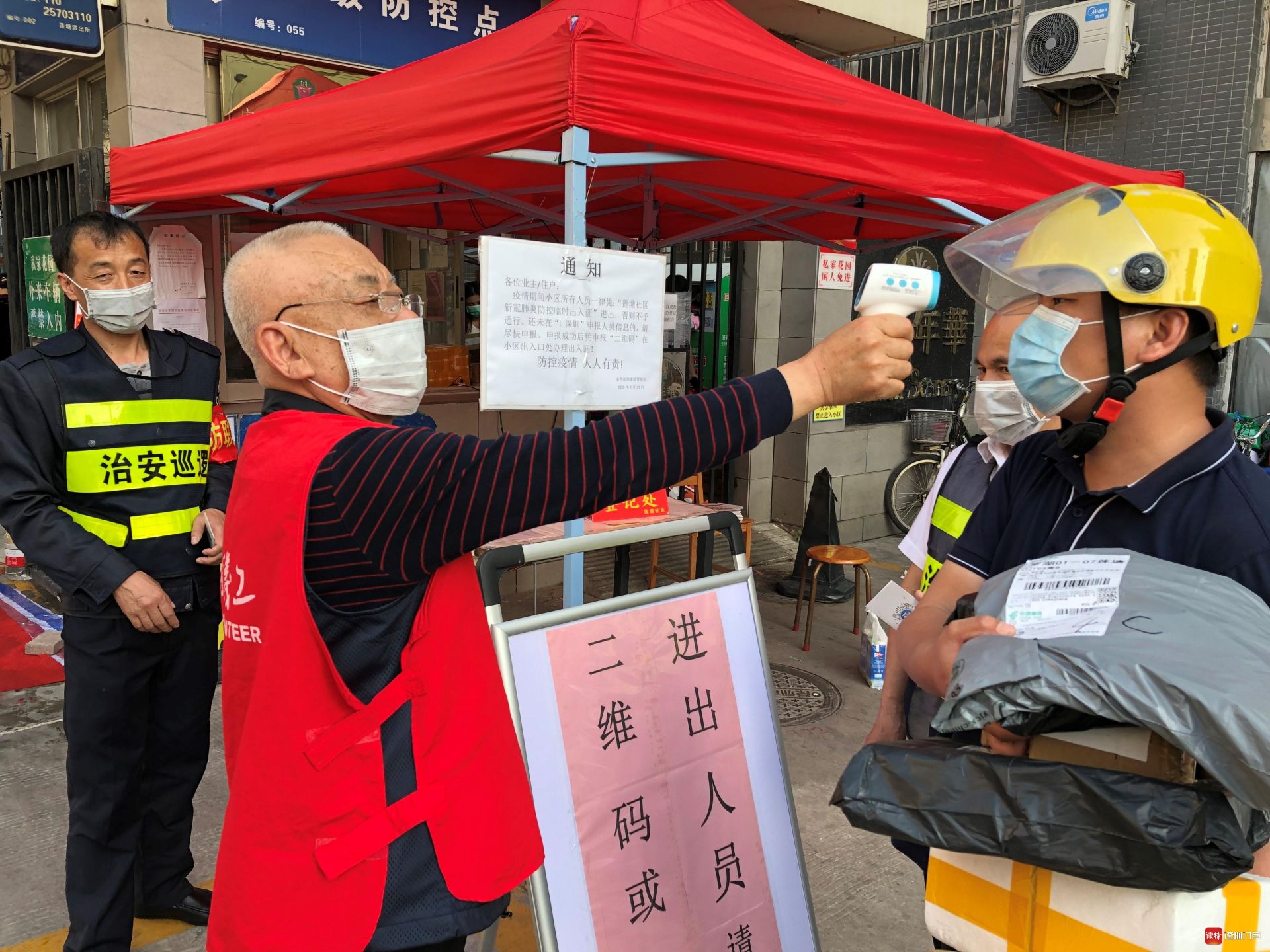 “您好,请问你住小区哪栋?麻烦出示‘i深圳’二维码,体温正常,请进。”在莲塘金色年华小区封控点,支部书记杨长生带着2名党员对进出住户进行登记排查、体温检测,以及督促落实“i深圳”信息申报等志愿活动。