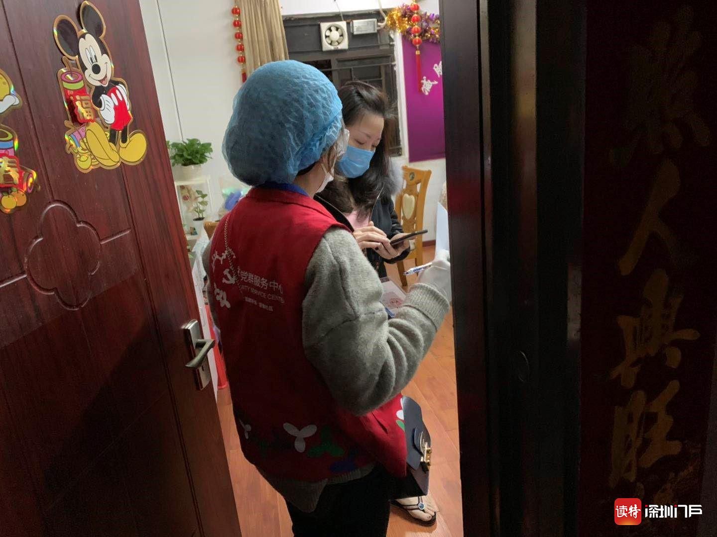 “您好,叔叔阿姨,不好意思,晚上还打扰你们,我是莲塘社区工作站的网格员杨文霞,这是我的工作证件,上门主要是想了解下你们家人是否都已经在‘i深圳’上完成自主申报。”居民在了解到她的来意后,友善地笑了笑,并出示手机申报的二维码给她核实。她快速仔细核实完后,再次进行了道谢,并上了四楼居民家继续开展核实工作。
