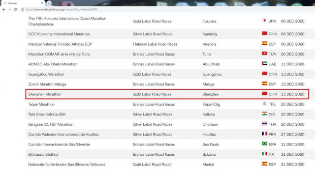 3 月 6 日,国际田联更新了 2020 年赛事日历,2019 深圳国际马拉松再获国际田联路跑"金标赛事"称号。这是深圳国际马拉松连续两年获得该项殊荣。