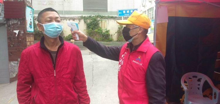 随着社区复工人员增多,进出的人员也逐渐增多,疫情防控工作压力大增。这时,罗湖区莲塘街道莲塘社区党委退休老党员们挺着腰板说:“疫情当前不言退,身为党员,我们要继续发挥余热。”