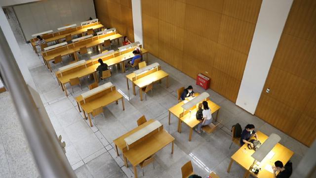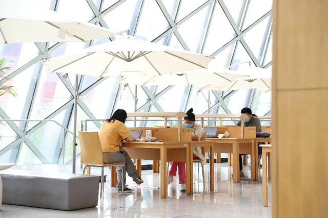 上午 10 时,深圳图书馆准时开馆,读者们经过体温检测、预约信息核查、洗手消毒等程序后陆续有序进馆。阅览区域内,读者有序地错位就坐。"不用经历‘抢位大战’就能落座阅读,还真有些不习惯。"来自罗湖的深圳大学生张紫煜感叹道。在阅读完一本杂志后,张紫煜将杂志放入了大厅的自助图书杀菌机中进行消毒。