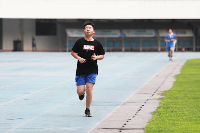 周六上午,在市体育中心体育场田径场锻炼的,大部分是即将参与体育中考的学生。李党利与妻子一大早就带着女儿来到田径场。他说:"疫情发生后女儿基本上待在家里,前一阵子带她到公园里跑一下,现在终于可以在体育场继续训练了。"在女儿练习跑步时,李党利也陪着冲刺,练得满头大汗。他说:"戴着口罩跑不太适应,等疫情结束了会跑得更尽兴。"