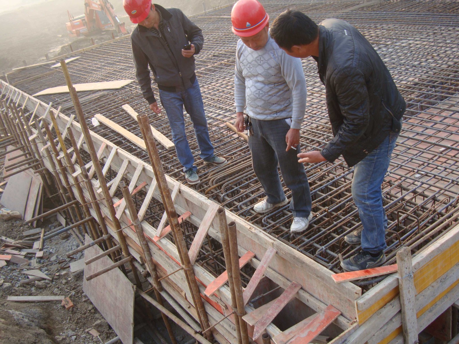 图为:阜阳第三中学校区工程施工人员现场施工