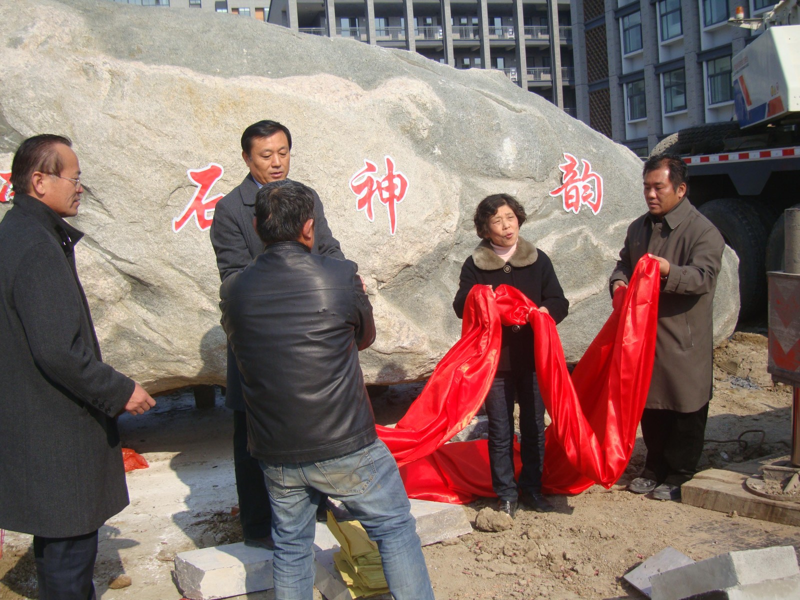图为:2014年8月20日,检查验收合格圆满竣工验收揭牌现场
