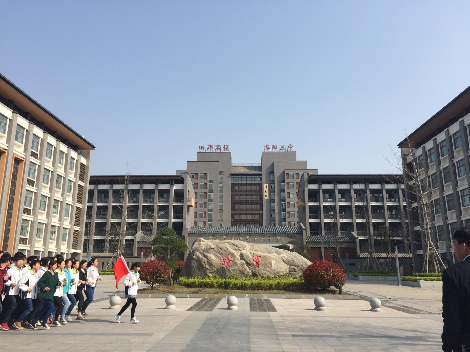 图为:深圳市艺美博园林景观工程有限公司承建的阜阳市第三中学新建的美丽校区