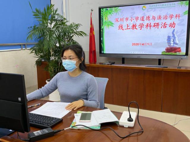 这节线上道法课,以疫情为教材,结合学生当下"停课不停学"期间宅家学习的真实现状展开教学,引导学生主动反思经验与不足,并进一步改进现状、做到更好。罗湖区教科院教研员杨柳全程指导,翠外校长孔文东带领校级领导班子全面统筹;学校电教团队全力提供技术支持;学校道德与法治科组老师们开展云研讨,团队作战。