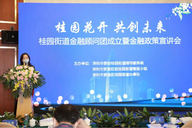 近日,市区两级派驻桂园街道指导服务组与桂园街道办事处携手深圳市各金融行业代表,在罗湖区君胜鸿隆世纪广场举办了”桂园花开共创未来”桂园街道金融顾问团成立暨金融政策宣讲会活动,为辖区各行业企业提供全方位金融顾问服务,同时为桂园街道制定金融发展规划等提供长期支持。
