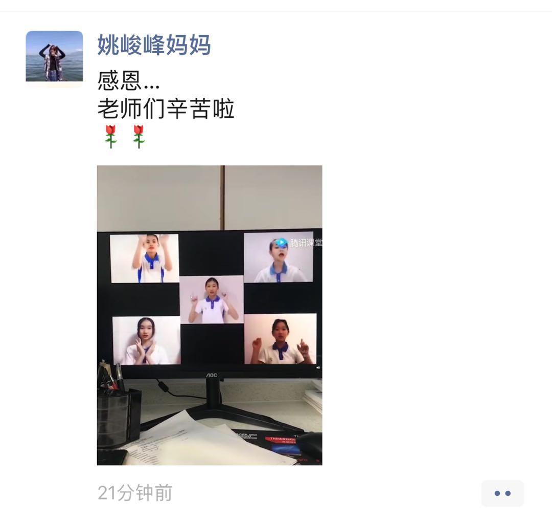 参与手势舞表演的初二(5)班的谢馨慧同学很感谢学校给了他们一次展示的机会。她说线上教学开展有一段时间了,虽然他们已逐步适应,但时间长了还是觉得有些乏累,而学校线上艺术节的开展活跃了他们的宅家学习生活,虽然录制过程中比较曲折,但他们都乐在其中,因为其间增加了与老师和同学们交流沟通的机会,仿佛又回到了校园。