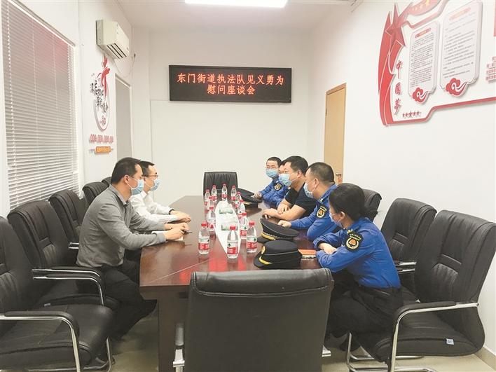 4月17日上午,罗湖区东门街道执法队见义勇为慰问座谈会举行。