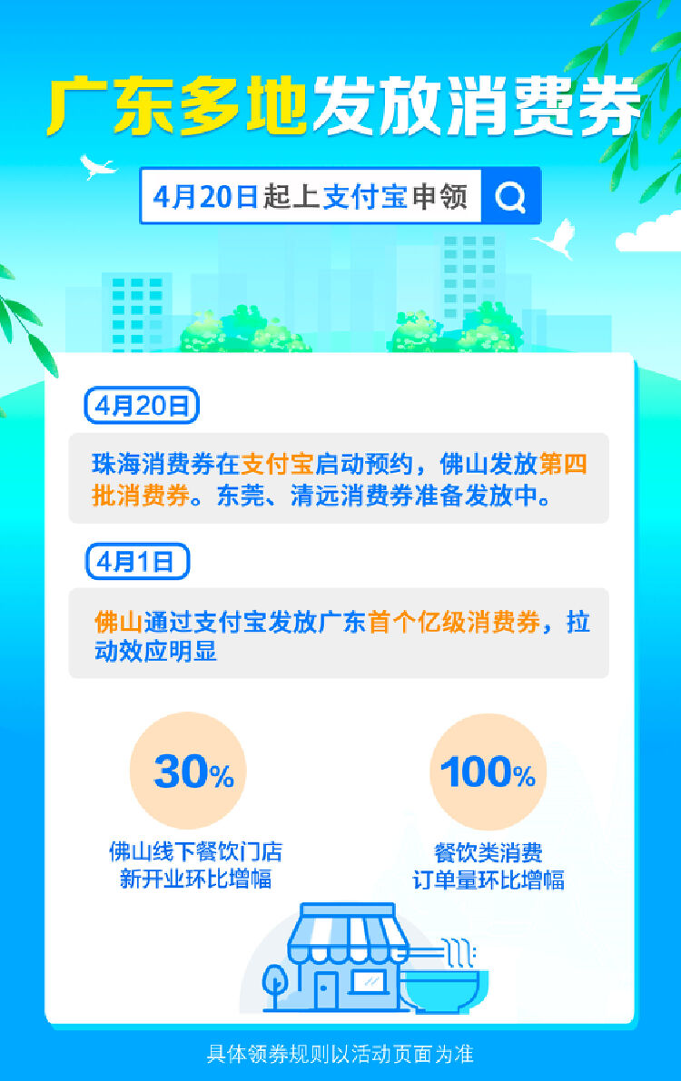 标题: 支付宝:广东消费券金额破10亿 今起多地市再发券