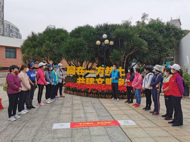 半个小时的讲解很快结束了,志愿者们组织大家活动了身体,提出了健走时的要求,全程佩戴口罩,保持距离,有序行走,沿途可拍照,不久留,提倡走出健康,留下美景。