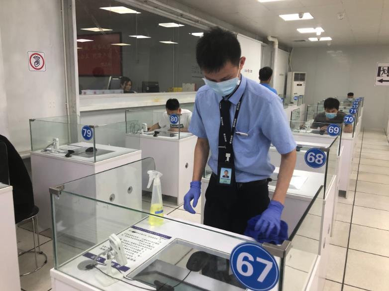 " 为了安全,考生在进入场所后,除人脸识别、审核身份等环节要摘除口罩外,其他时间均须戴好口罩。在等待、办理业务过程中,排队等候人员间隔不得少于 1 米,不要扎堆排队。" 他说。