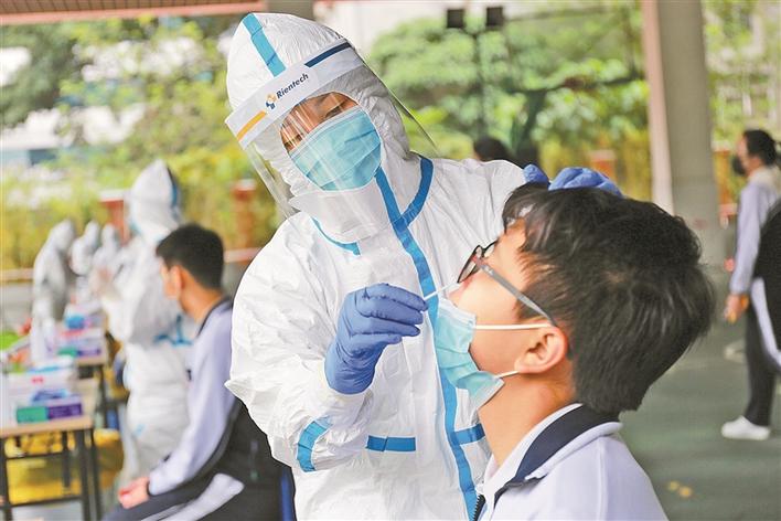 “每个采样点分工很细,前期准备工作详细周密,每所学校方队有1名队长、2名负责信息录入和条码打印的人员,以及专门的收样人员、接送人员和机动人员、采样组人员。”闫俊辉介绍。据统计,4月23至26日,罗湖区共对全区初三、高三学生及教职员工免费核酸检测采集样本17107例,仅4月25日当天,罗湖医院团队共采样12247例。