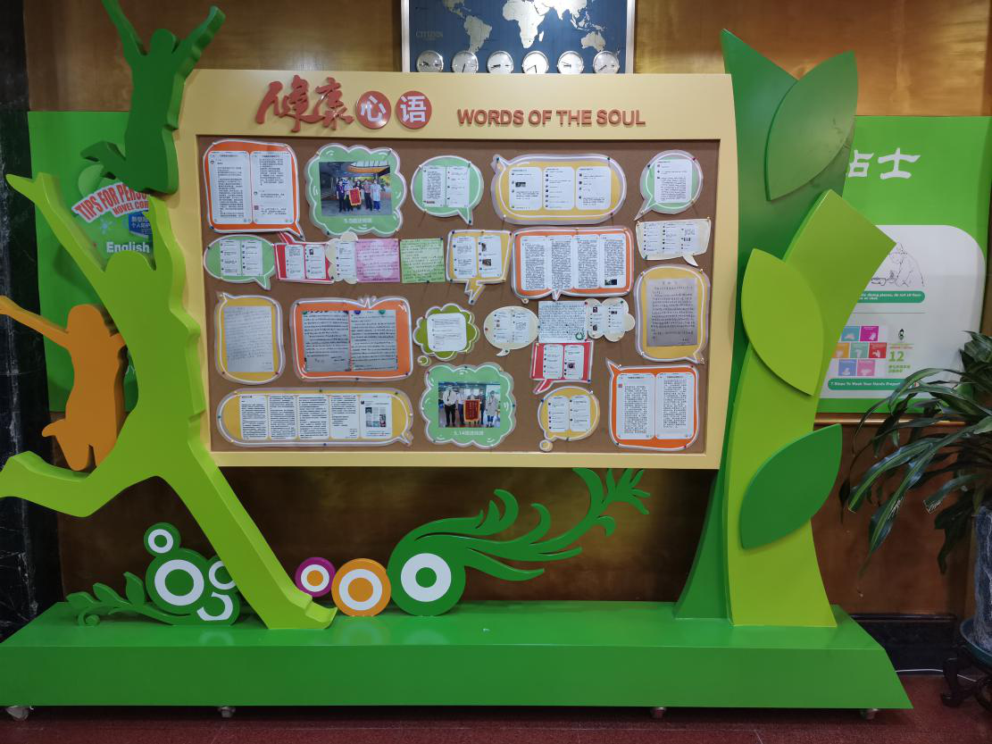 ↑竹园驿站大厅设置医学观察人员“健康心语”墙