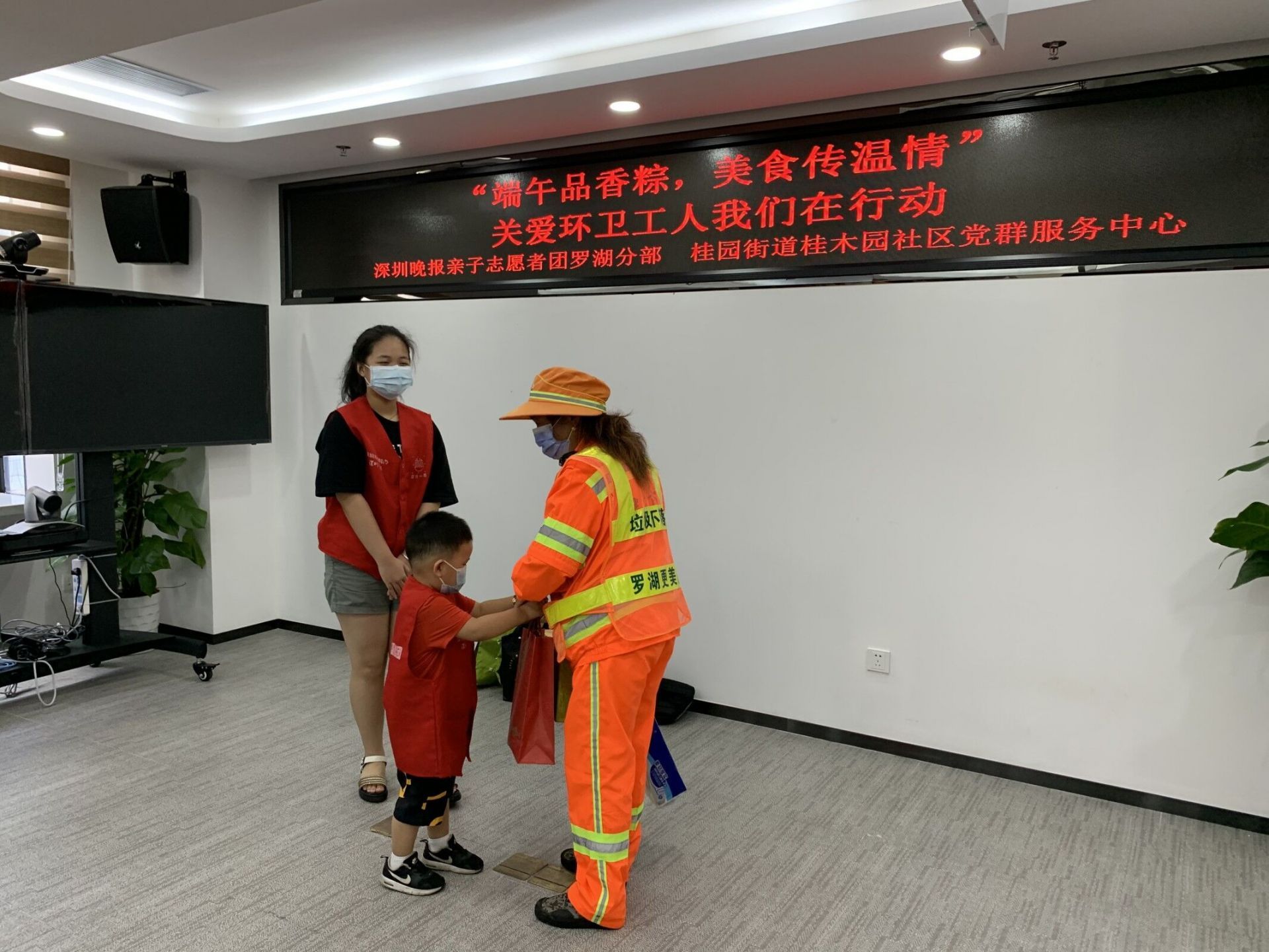 罗湖区桂园街道桂木园社区党群服务中心与深圳晚报亲子志愿者团罗湖分部联合开展的本次活动,意在向环卫工作者传递关爱与谢意,让默默付出的环卫工作者感受到温暖。
