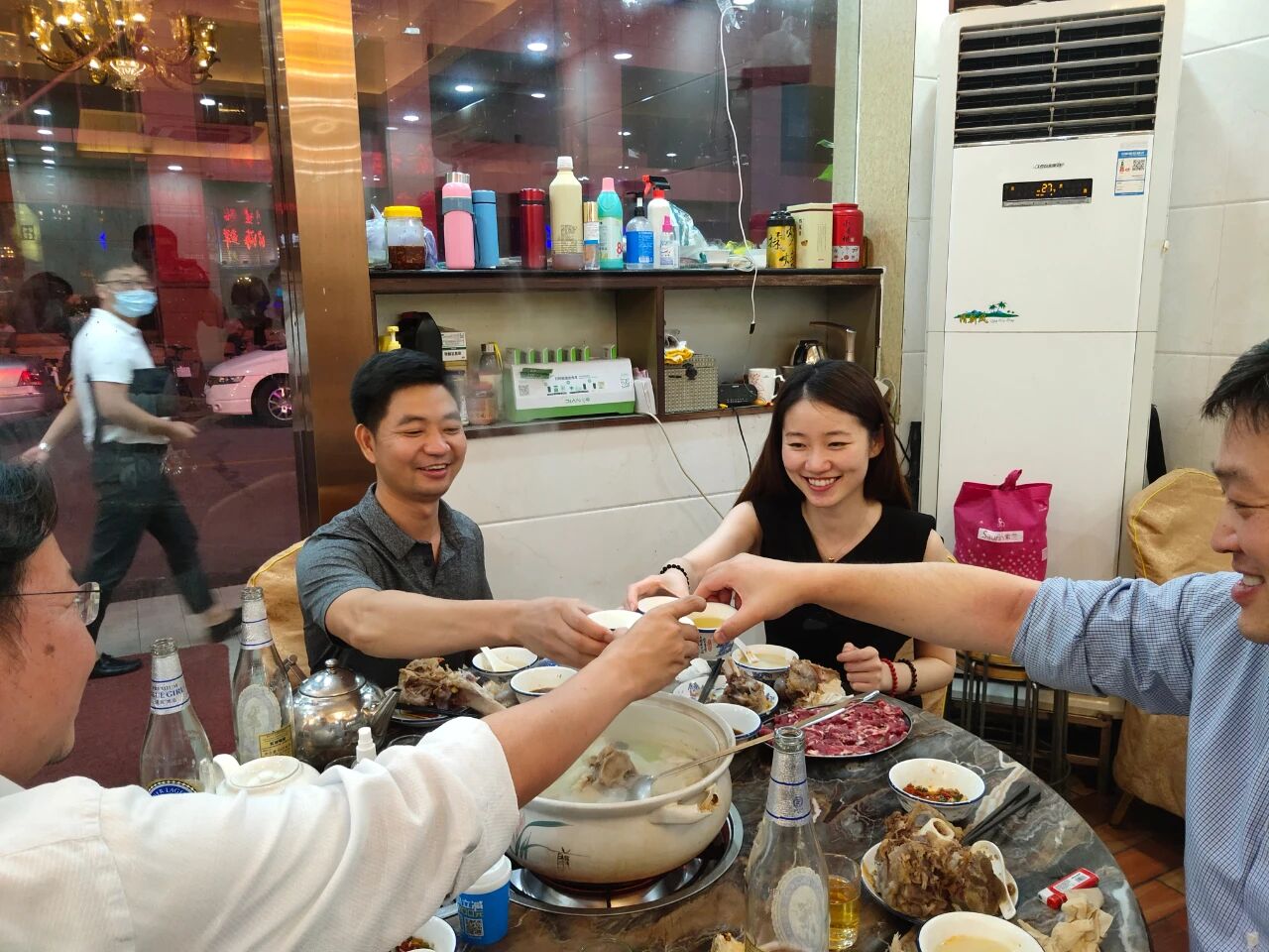 举杯时的欢笑声、一句句“欢迎光临”