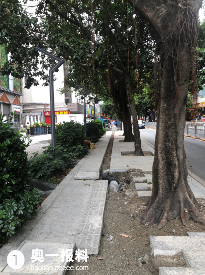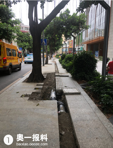 罗湖区莲塘路去年才修好的人行道又被刨开了,瞧瞧,连个防护栏都不用了!