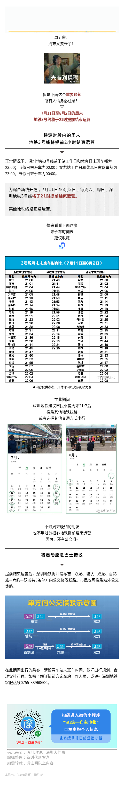 重要提醒!深圳地铁3号线周末将提前结束运营,时刻表出炉