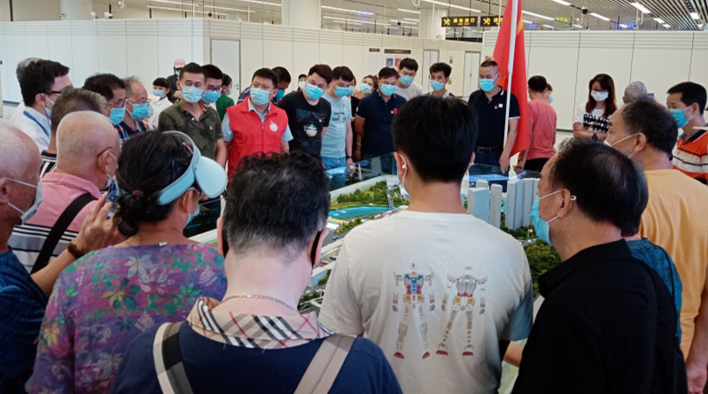 莲塘口岸是省、市重点工程,也是深港互通的又一重要通道,在经济特区建立40周年之际开通在即,对于推进粤港澳大湾区发展具有重要意义。为了让社区党员增强对口岸这一标志性工程的了解,在口岸工作人员的引导下,莲塘社区党委一行来到旅检楼二层入境大厅沙盘前,详细了解莲塘口岸整体规划情况,现场参观了“一站式”入境客车验放通道、入境大厅深港分界线、旅检楼三层出境大厅,并在入境客车桥头合影留念。学习参观完后,社区党委与莲塘口岸管理处党支部开展了结对共建交流,社区党委第一书记李岸英、党委书记王建平与莲塘口岸管理处党支部书记郑海斌就党建共建、活动互动、资源共享等方面进行了讨论交流,初步达成了党建共建共识,以此推动基层党组织交流合作,形成优势互补、共驻共建的基层党建工作新格局,进一步提升基层党建工作质量和水平。