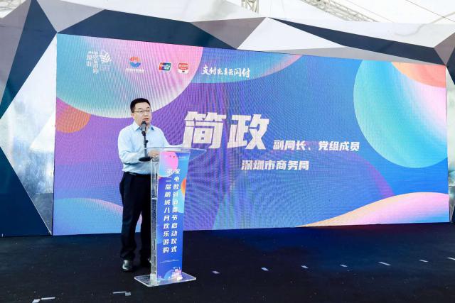 ▲深圳市商务局副局长简政发表讲话