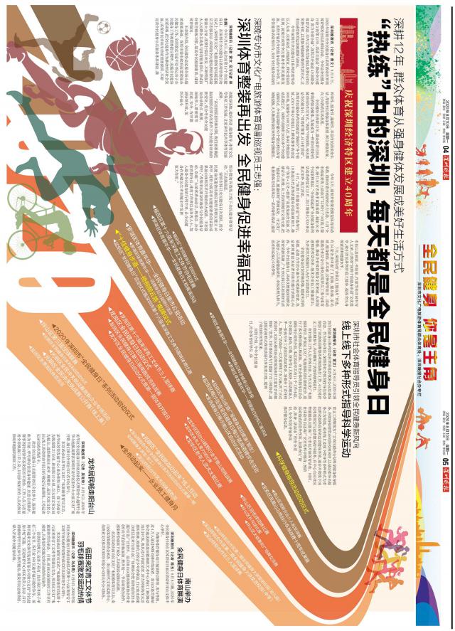 8 月 8 日,2020 年深圳市全民健身日系列活动在罗湖体育休闲公园足球场启动。今年是全民健身日设立的第 12 年,活动主题是"推动全民健身 助力全面小康",深圳共开展近 40 项群众体育活动,市内大型体育场馆也免费向市民免费开放,以此倡导健康积极的生活方式,让市民感受体育运动的激情与快乐。