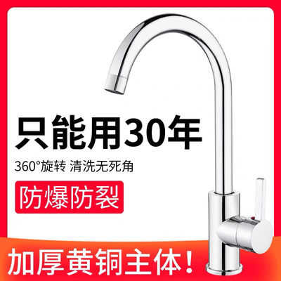 【包邮】厨房全铜洗菜盆冷热水龙头旋转全铜体单冷不锈钢水槽洗手面盆防溅