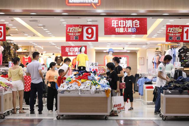 ▲门店打折促销,吸引来众多晚间购物的市民。