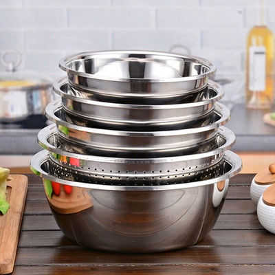 【包邮】【五件套】不锈钢盆圆形加厚加深盆子家用厨房装汤和面洗菜沥水盆