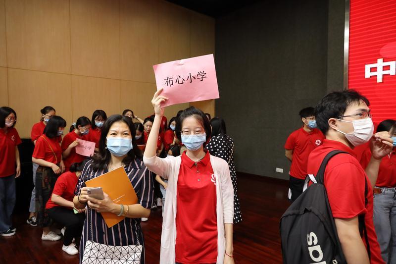 ▲开班典礼上还特意安排了一个有意思的环节:让新教师与自己所对应的学校对接,找到自己的“娘家人”。