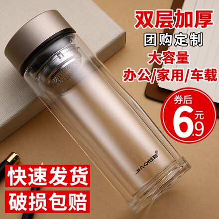 双层玻璃杯ins高档便携透明带盖泡茶杯