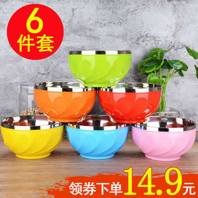 【包邮】【六个装】彩色不锈钢碗防烫防摔隔热儿童家用吃饭装烫泡面碗