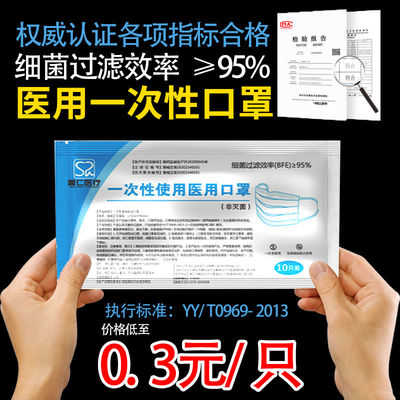 【包邮】50只医用一次性医用口罩防飞沫熔喷布三层医用口防护夏天透气