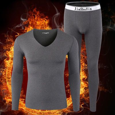【包邮】2020新款德绒冬季厚款V领无痕加绒保暖内衣男士秋衣裤套装女内衣