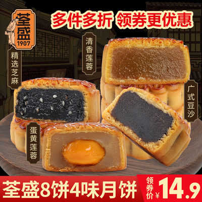 【包邮】荃盛广式蛋黄莲蓉月饼八饼四味豆沙黑芝麻多口味散装中秋月饼