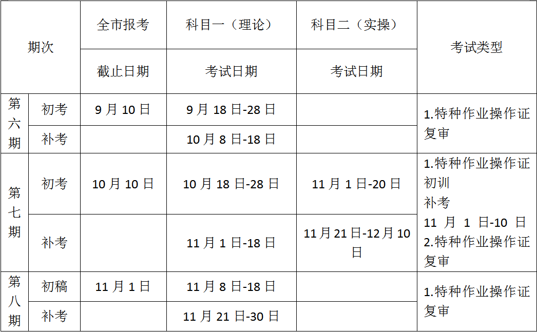 特种作业人员考试安排通知