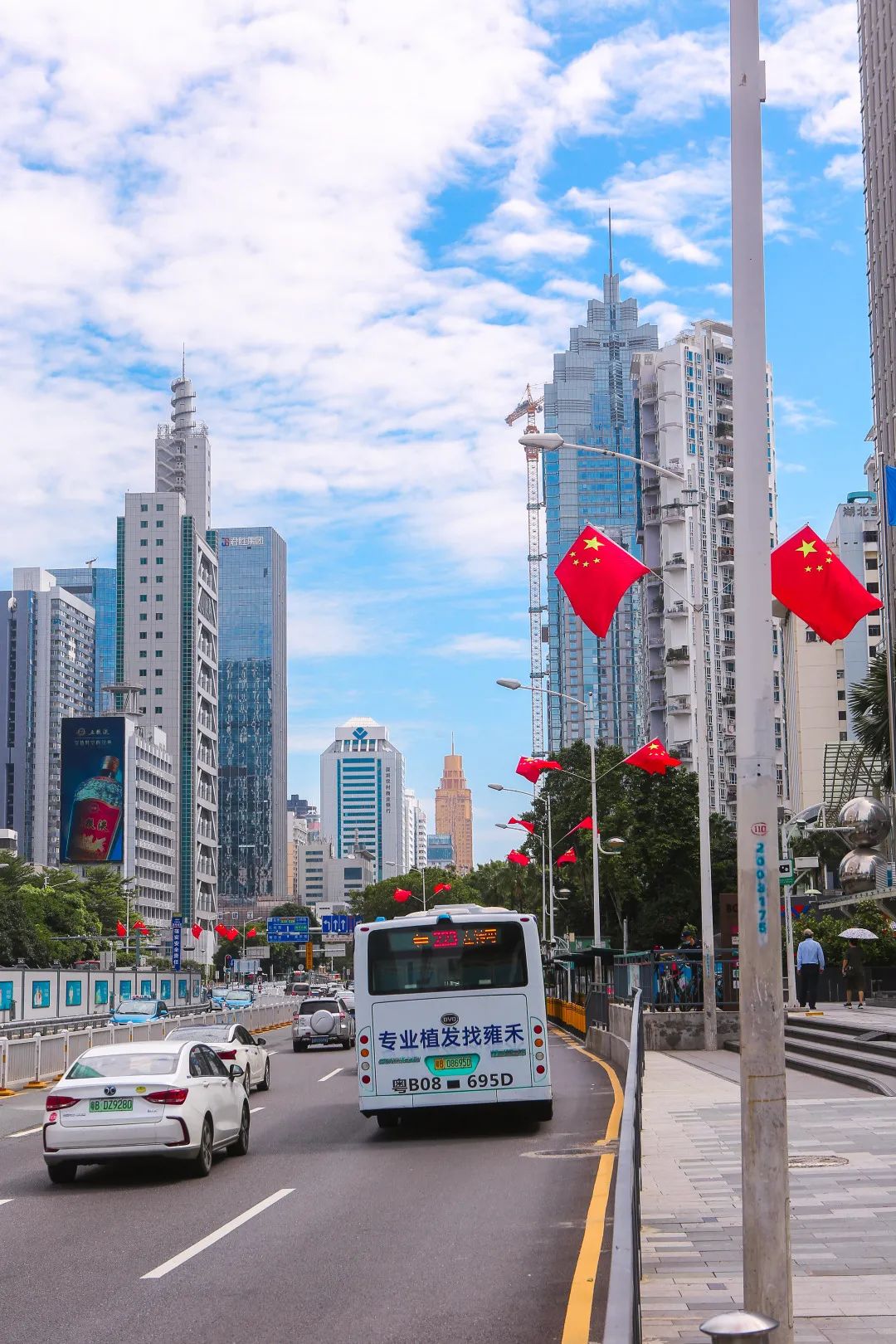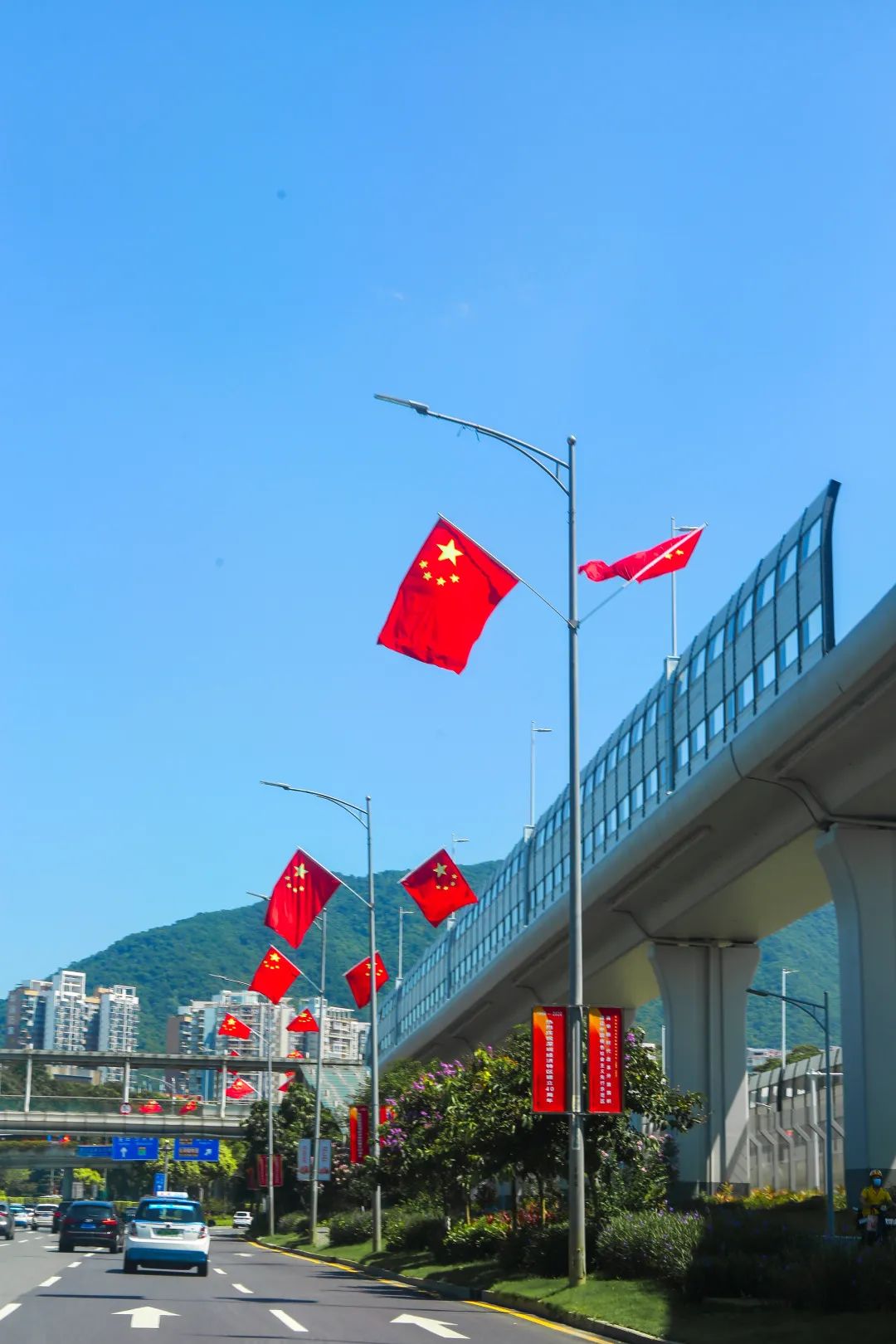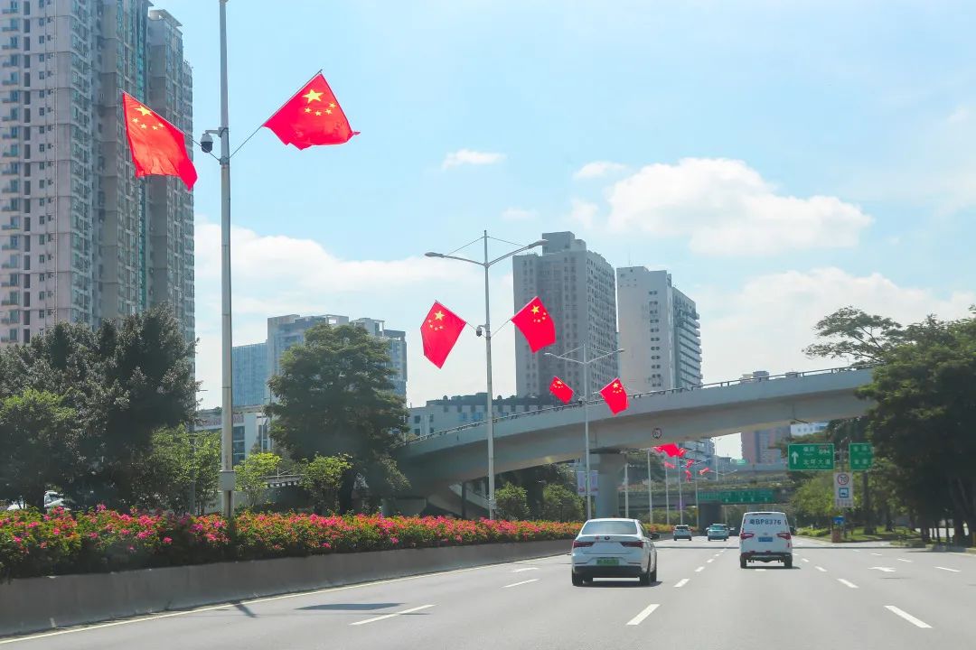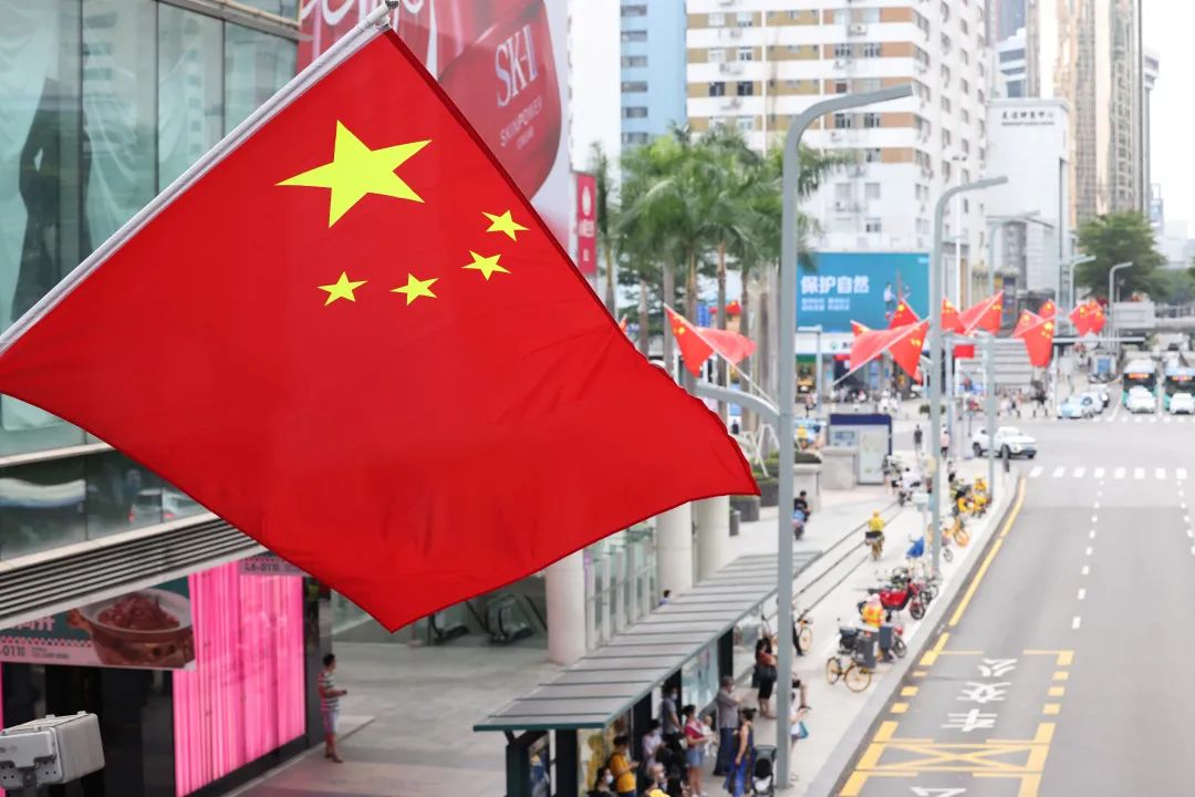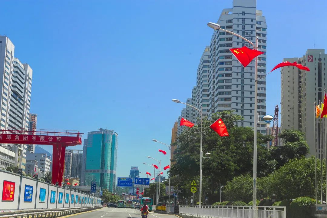 罗湖各地纷纷挂上鲜艳的国旗