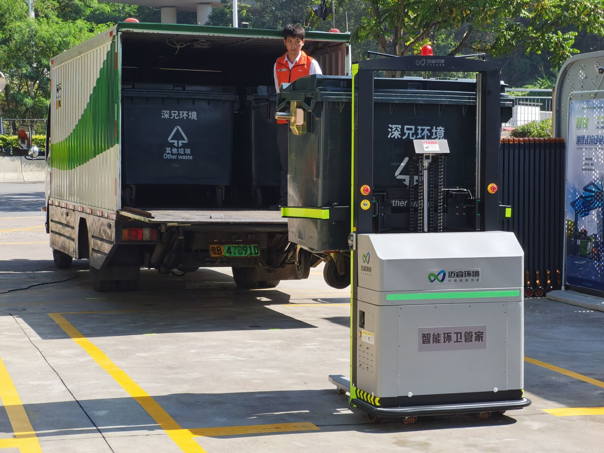 在10月26日广东省第27届环卫工人节来临之际,首批两台智能环卫机器人亮相罗湖区长岭社区地埋式垃圾站。在智能环卫机器人的帮助下,垃圾站清运全过程实现自动化、智能化,大大降低了环卫工人的工作强度,用科技创新关爱环卫工人, 为环卫工人切实“减负”,致敬深圳环卫四十年。