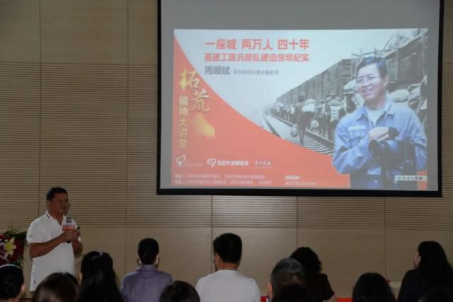深圳拓荒牛精神宣讲团成员、深圳电视台著名摄影师周顺斌出席活动,宣讲了《基建工程兵部队建设深圳纪实》,以亲历者的身份讲述了两万基建工程兵来深建设的历史,一张张珍贵的记录深圳发展历程的老照片,生动再现了当年那段激情燃烧的历史,再现了中国改革开放大潮下的精彩故事。那些感人的建设场面、豪迈的军人身影,也深深感动着深圳的学生们,让”特区拓荒牛”无私奉献、艰苦奋斗的形象被新一代深圳人铭记和传承。