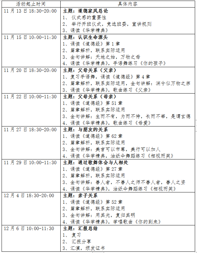 阳光妈妈班课程安排表: