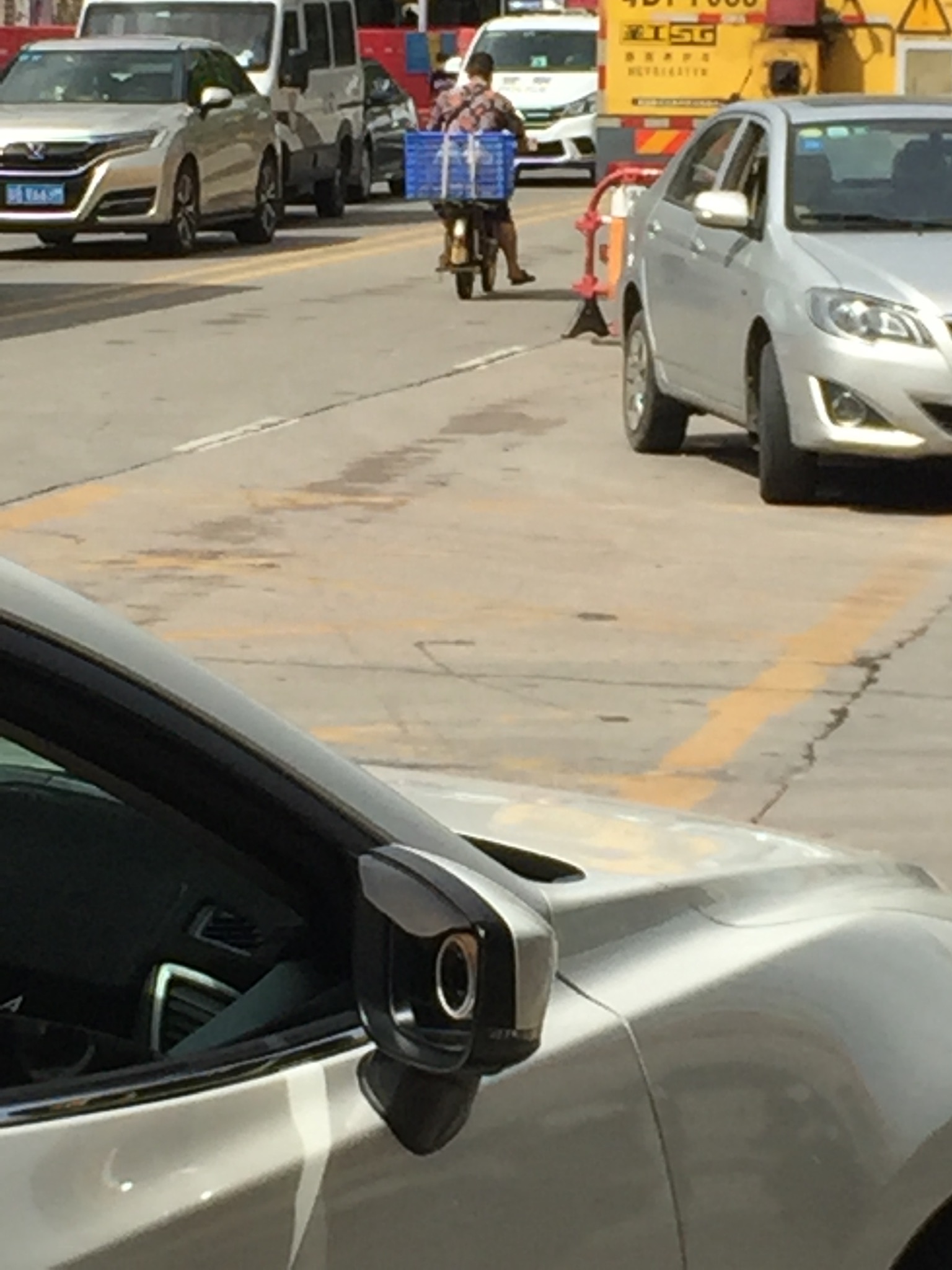 【随手拍】电单车骑行者不戴头盔,行驶在机动车道上。