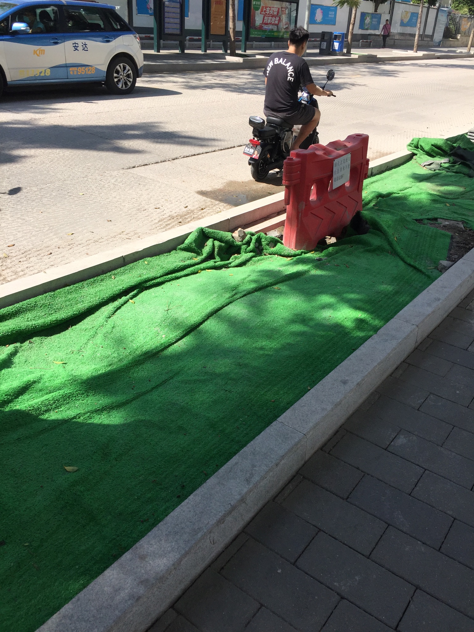 电单车骑行者不戴头盔,行驶在机动车道上。