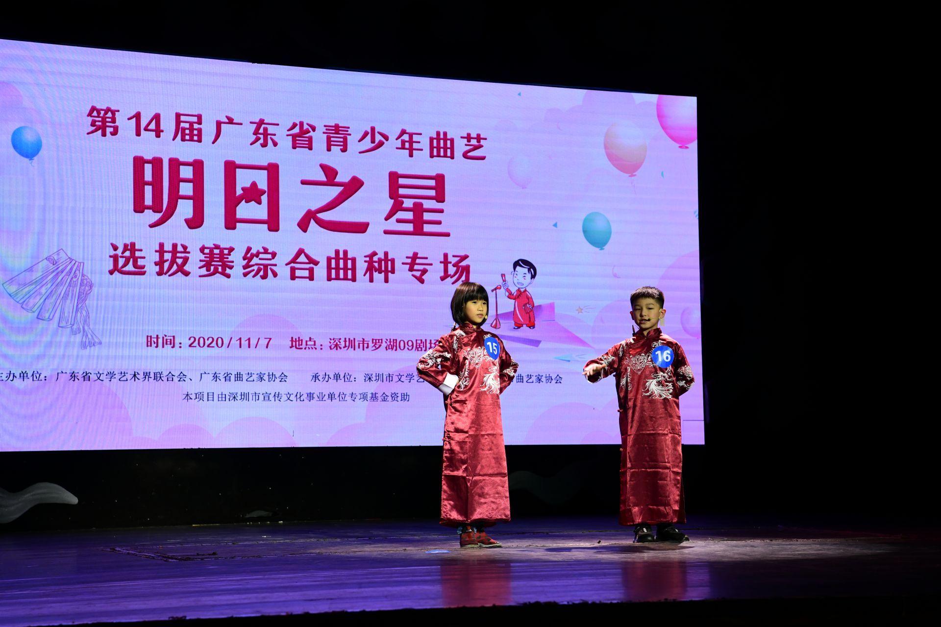 11月7日下午,由广东省文学艺术界联合会、广东省曲艺家协会主办,深圳市文学艺术界联合会、深圳市曲艺家协会承办的第十四届广东省青少年曲艺“明日之星”选拔赛综合曲种专场决赛暨颁奖仪式在深圳罗湖09剧场举行。