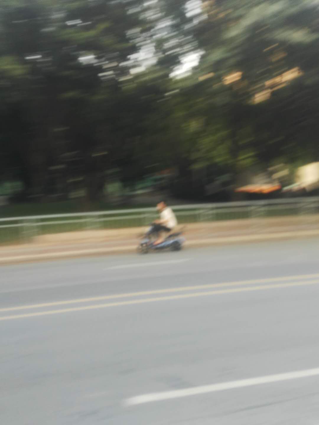 一辆电动车不遵守交通规则在马路骑行。