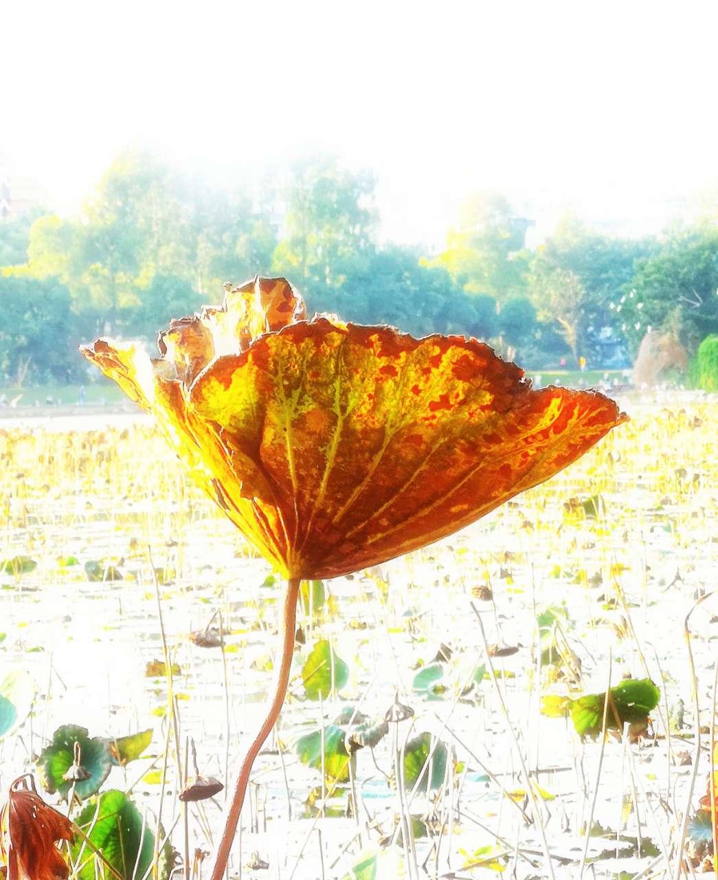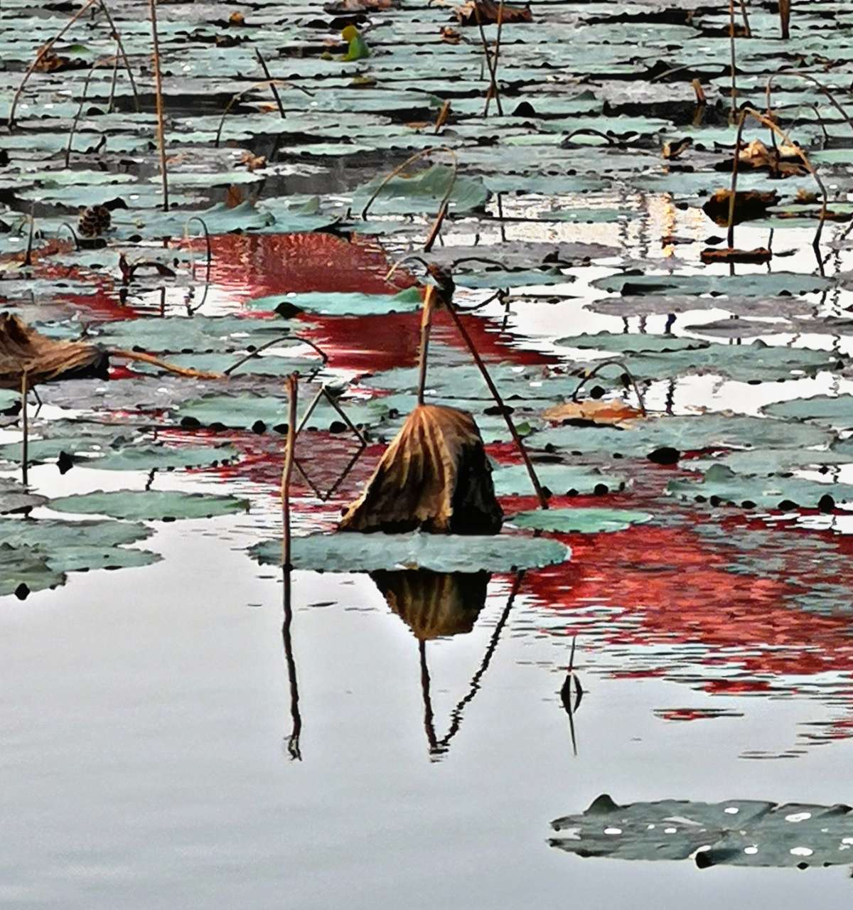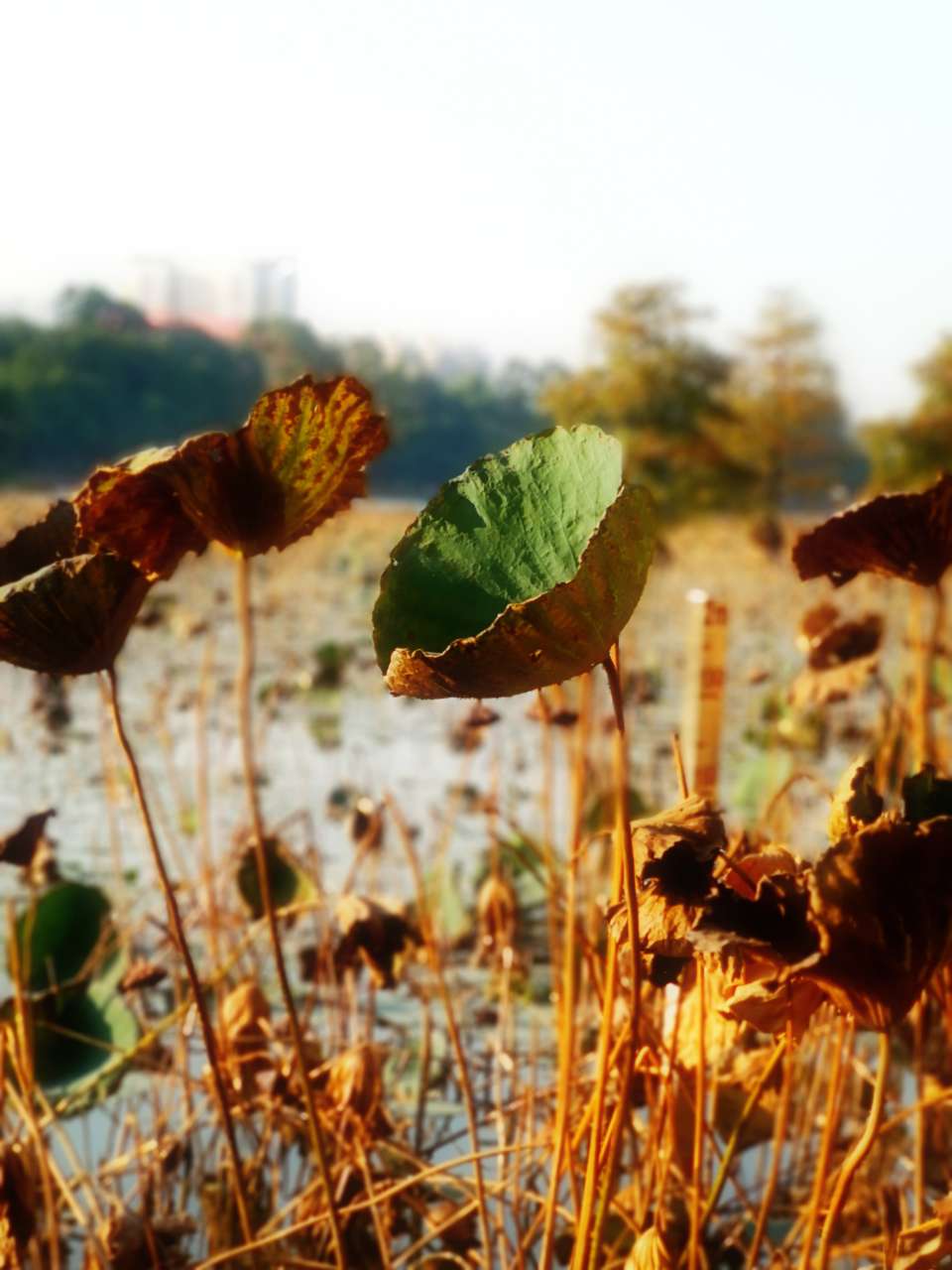 【深秋残荷一抹绿】摄于深圳洪湖公园
