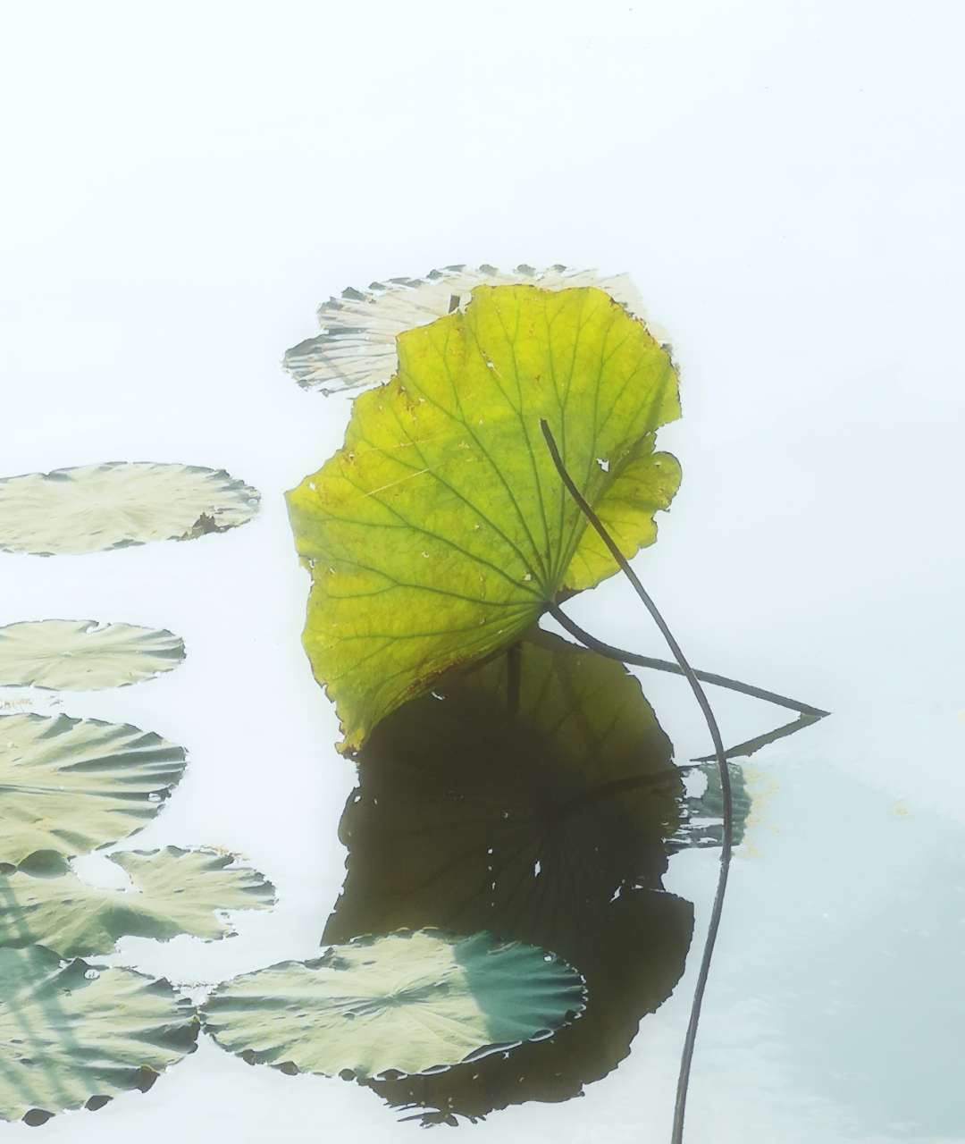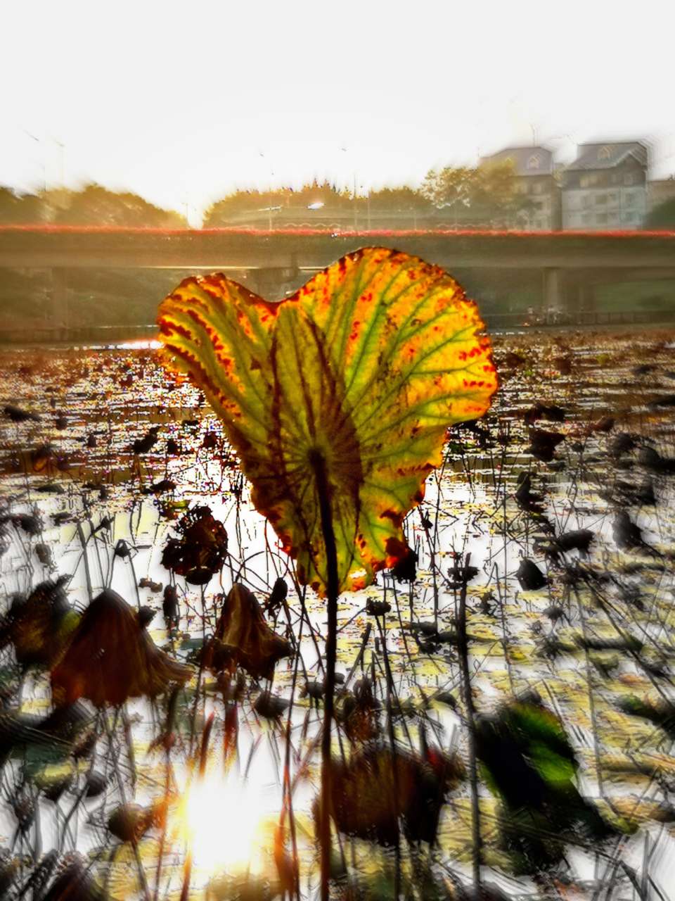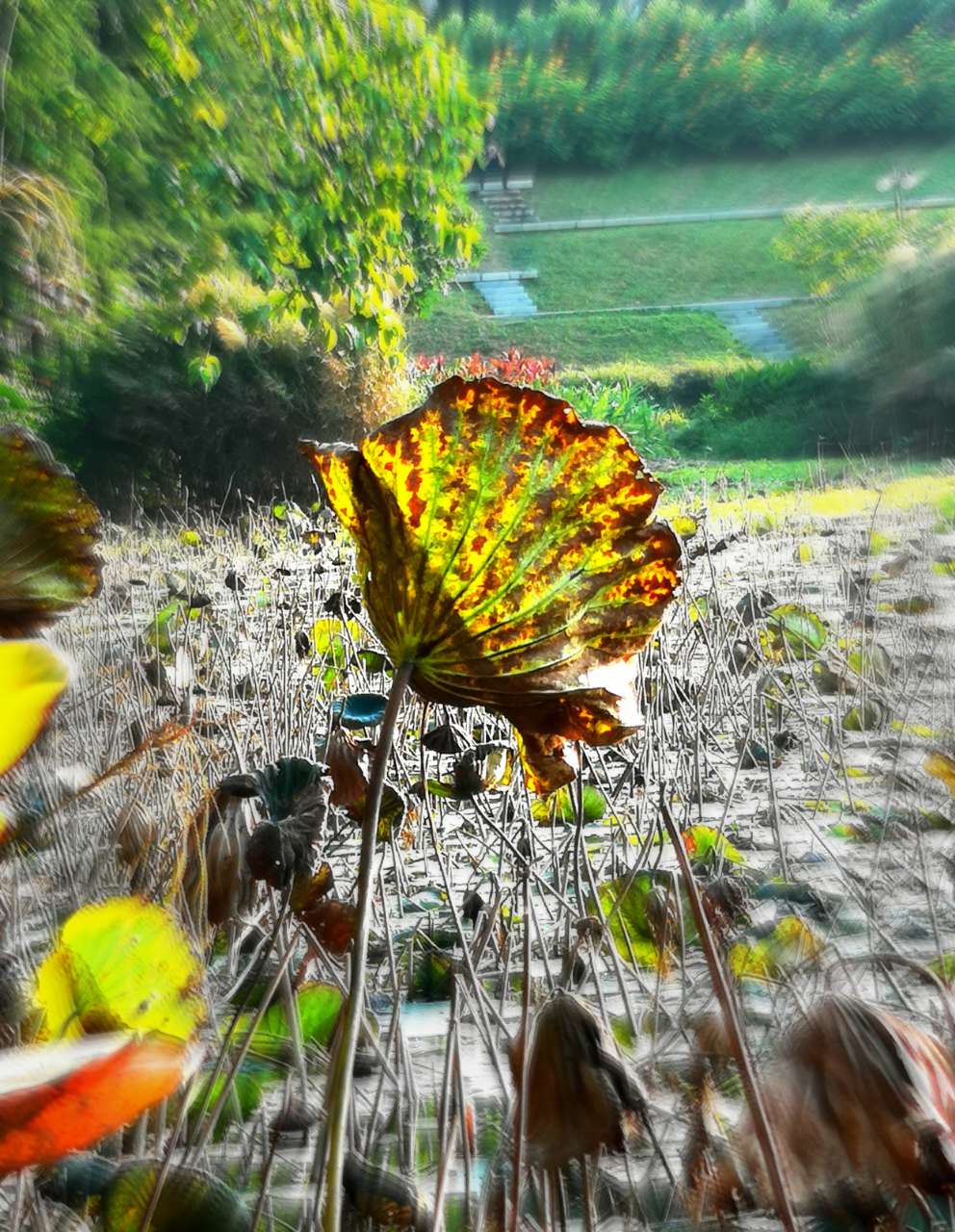【深秋残荷一抹绿】摄于深圳洪湖公园