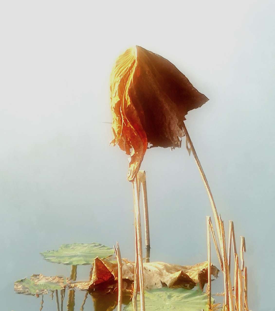 深秋残荷一抹绿,我为拍残荷而来,花开花谢,叶绿花红,不过是四季依序更迭的草木风物,哪怕是一湖枯荷零落,也能入眼入心……。芳华散尽留清骨,别有风韵锁残妆。。。