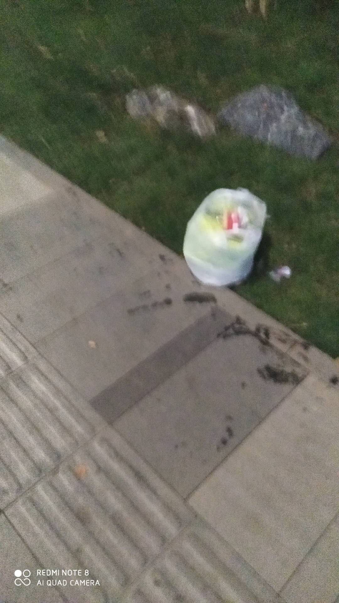 这一袋垃圾就随便往绿化草丛边