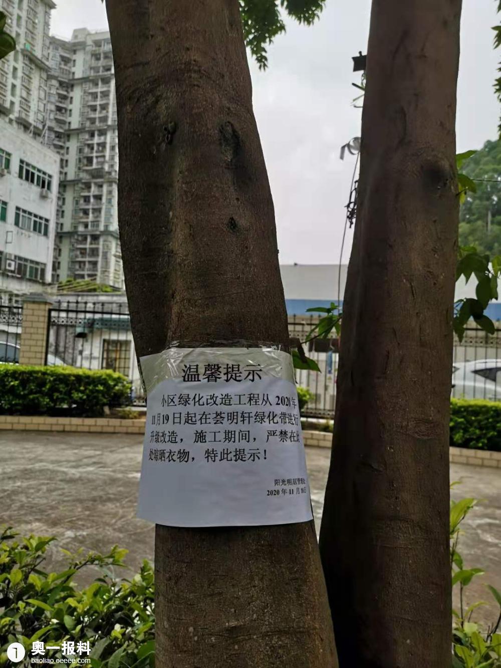 2、小区里的树也是树,不影响楼体安全,还有美观作用的树木被移走。多棵14年以上树龄的女贞子等药用价值的树木,在无任何说明公示情况下,被野蛮挖掘,挪移不知去向。